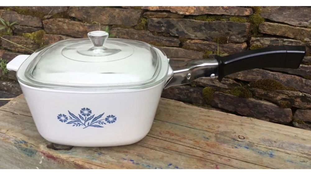 Here's a vintage Pyrosilware 2.5 pint lidded casserole dish with a detachable handle. 💙