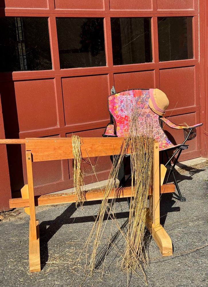 First afternoon of #springbreak spent #braking, #scutching & #combing #flax from our 2023 harvest at UNH Department of History. @uofnh.bsky.social