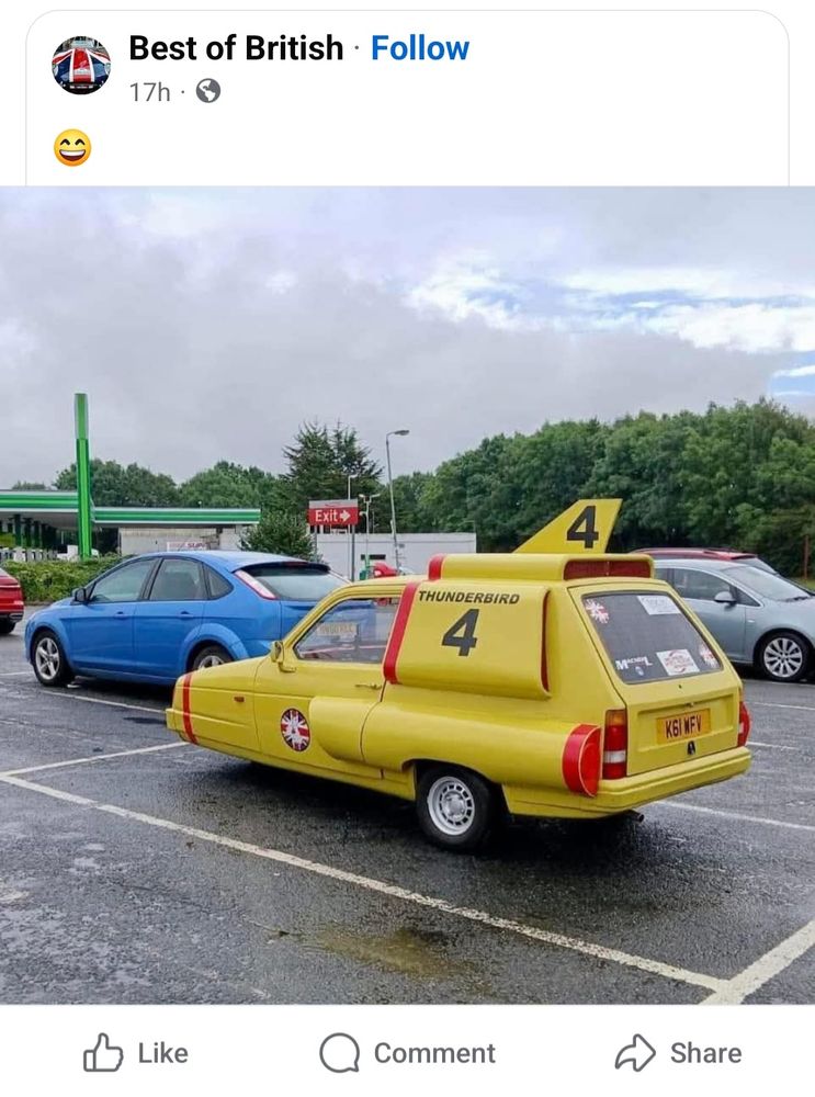 My first thought when I saw this was when Red Dwarf did a Corrie crossover & Starbug was made out of a Smart Car. Obviously, it's Thunderbird 4 not Starbug, but all I do know is I've now got an image of Del and Rodney running across the car park dressed as Virgil and Jeff Tracy 🤣 #OnlyFoolsAndHorses