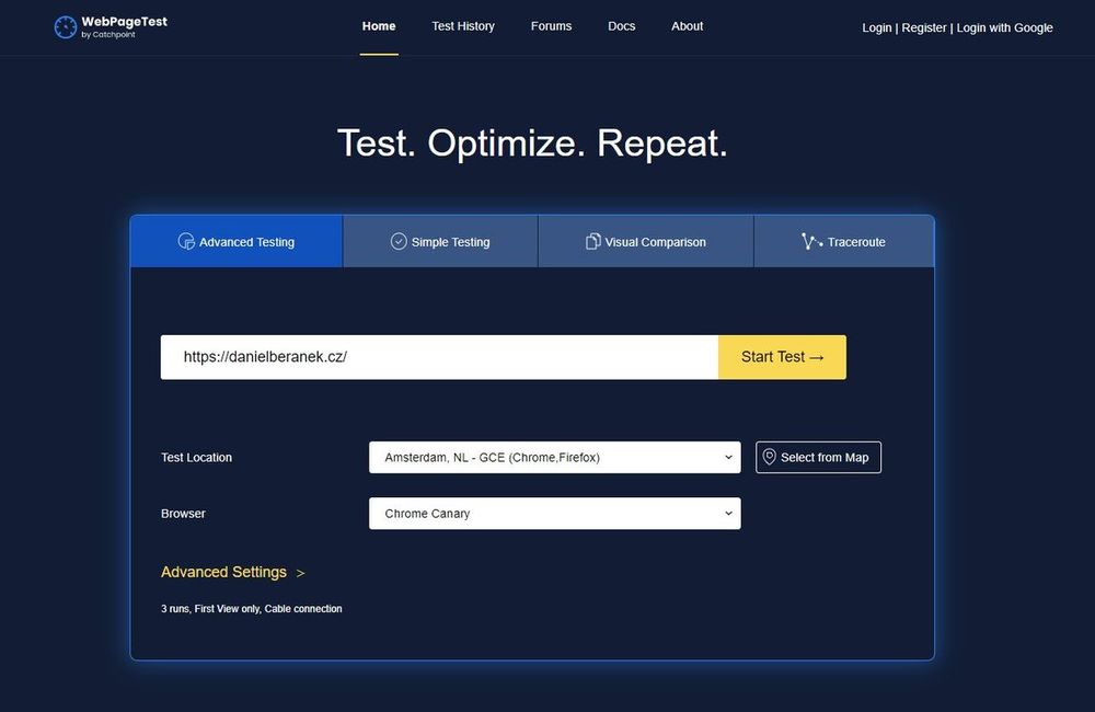 WebPageTest potkal #flatdesign. Viditelné, ani podkapotní fičury se nemění. Napojení na#a #WebSpeedTest od #Cloudinary zůstávají zachovány.