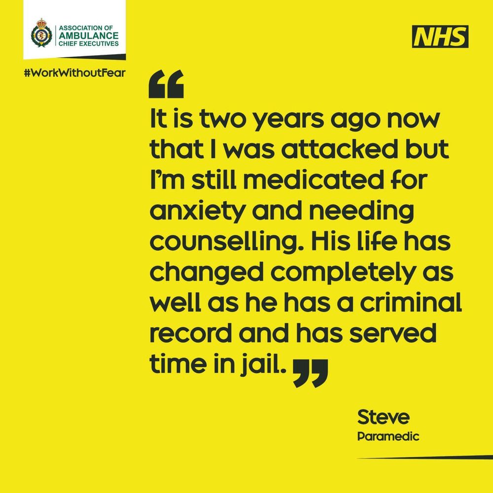 #AmbulanceStaff face the possibility of violence every shift & we’re incredibly saddened to hear that the number of violent incidents is increasing.