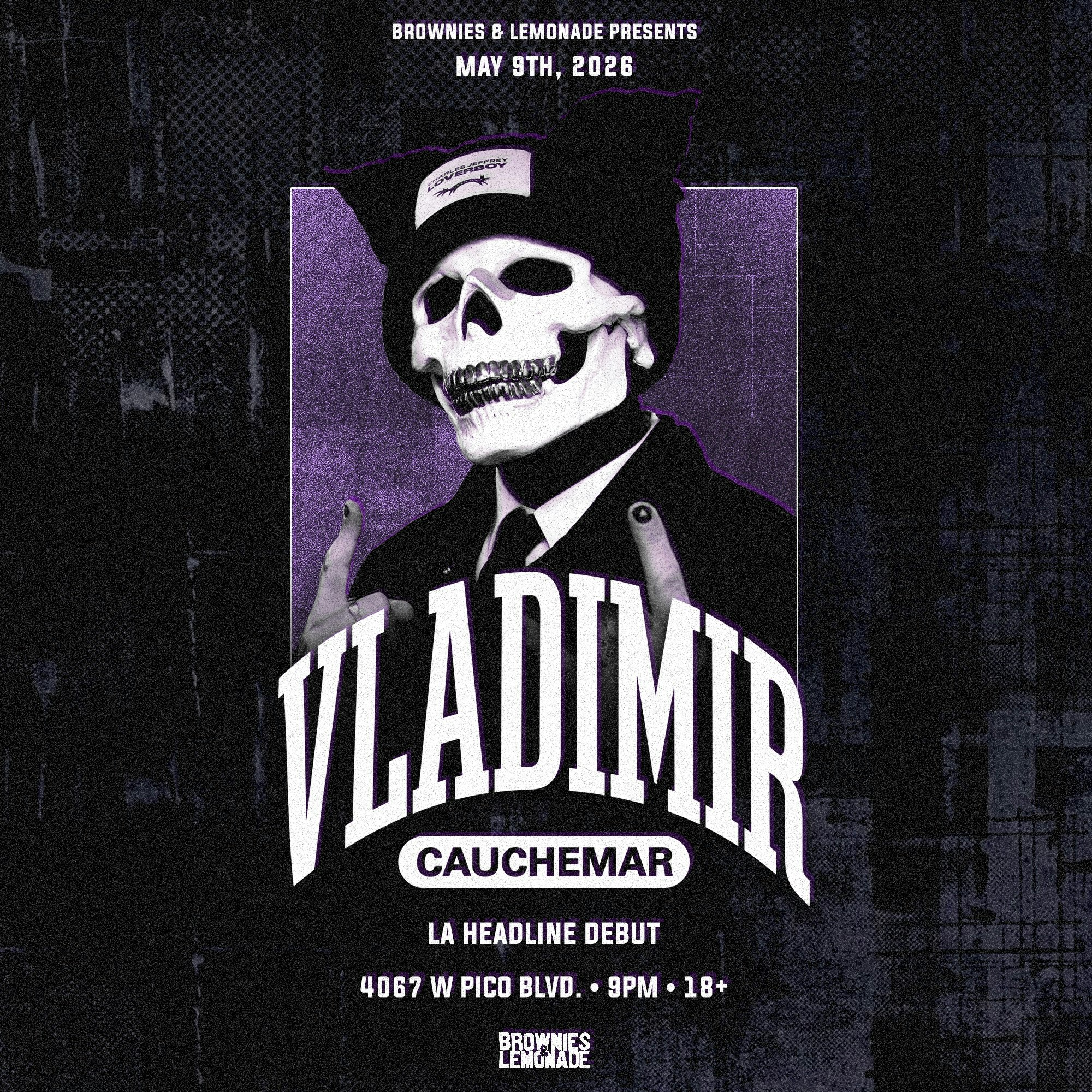 Brownies & Lemonade brings Vladimir Cauchemar to Catch One for an 18+ LA debut headline show, delivering high-energy electronic beats in Catch One's neon-lit club. Doors at 9pm for an intimate, late-night party atmosphere.
