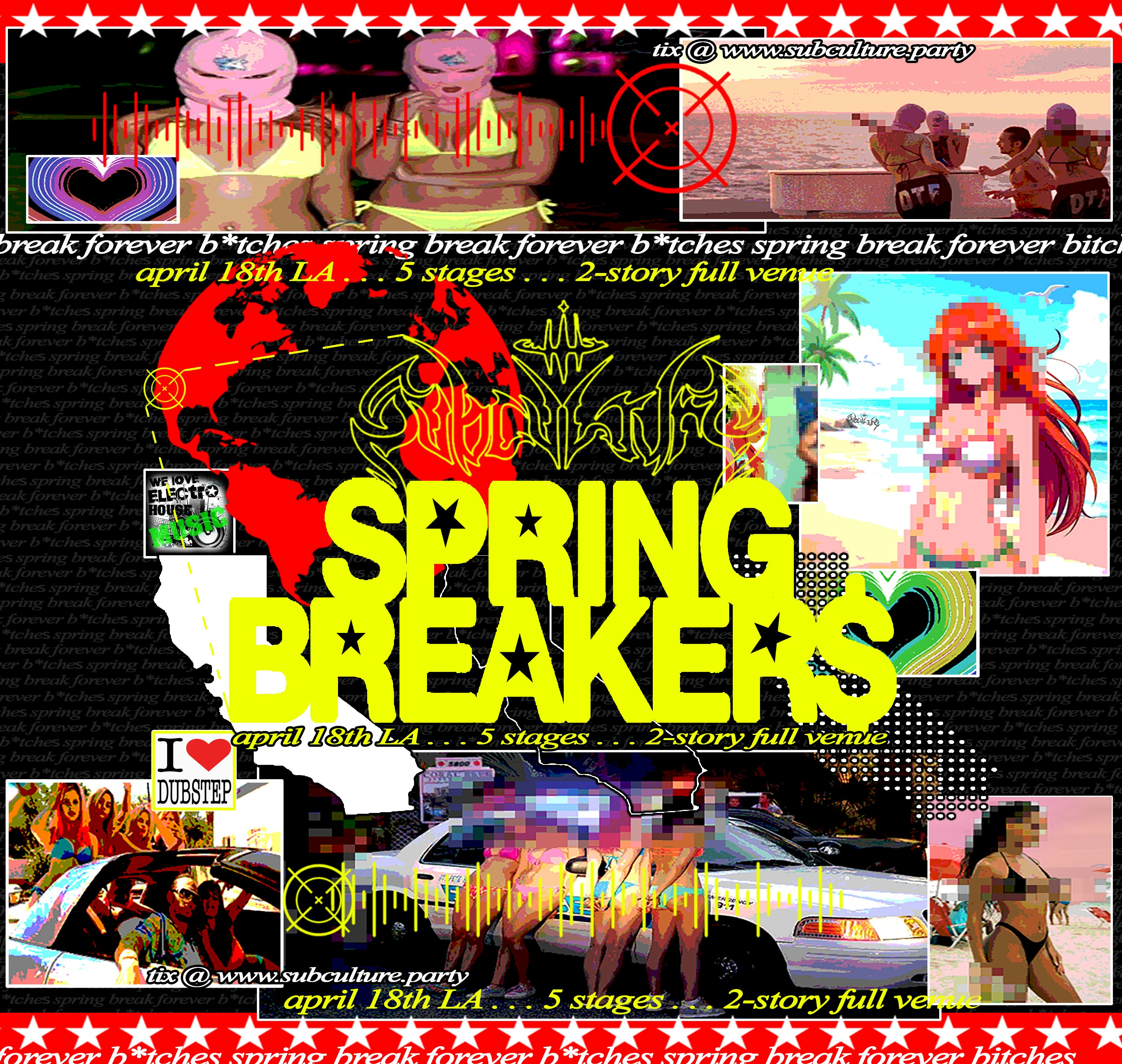 Subculture presents SPRING BREAKER$, on April 19, 2026, a 2-story venue takeover at Catch One in Los Angeles, blending electro, dubstep and techno with live performances and surprises. This 18+ night promises unhinged energy and seductive vibes, with the lineup to be announced.