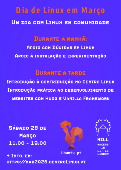 O Linux Center organiza um dia de Linux no MILL (Makers In Little Lisbon), partilhando conhecimentos, colaborando em projectos e promovendo o Software Livre em Portugal e além-fronteiras.