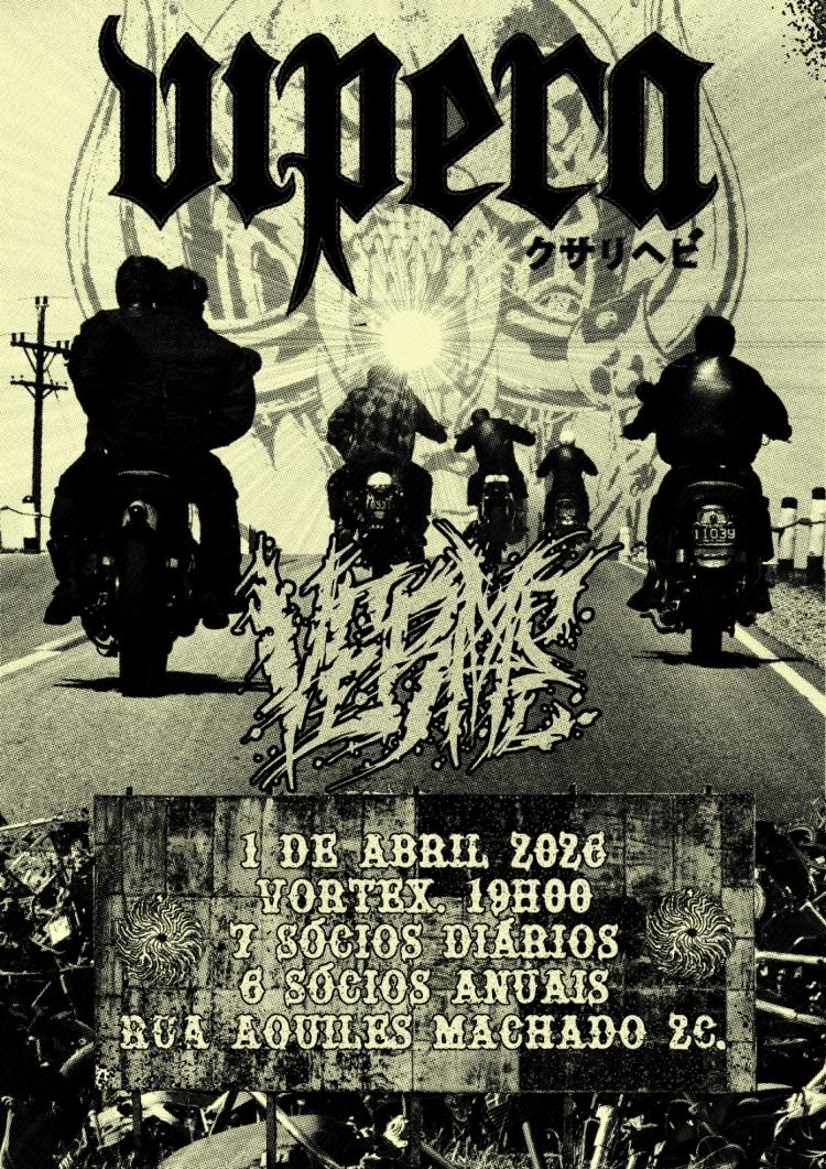 Vipera (Zagreb) + Verme protagonizam uma dupla de rock enérgico no VORTEX em Lisboa. O trio de Zagreb canaliza o heavy rock dos anos 70 com atitude punk e energia de garagem, acompanhado por Verme; portas às 19:00, concerto às 20:00; bilhetes 6€ (sócios) / 7€ (não sócios).