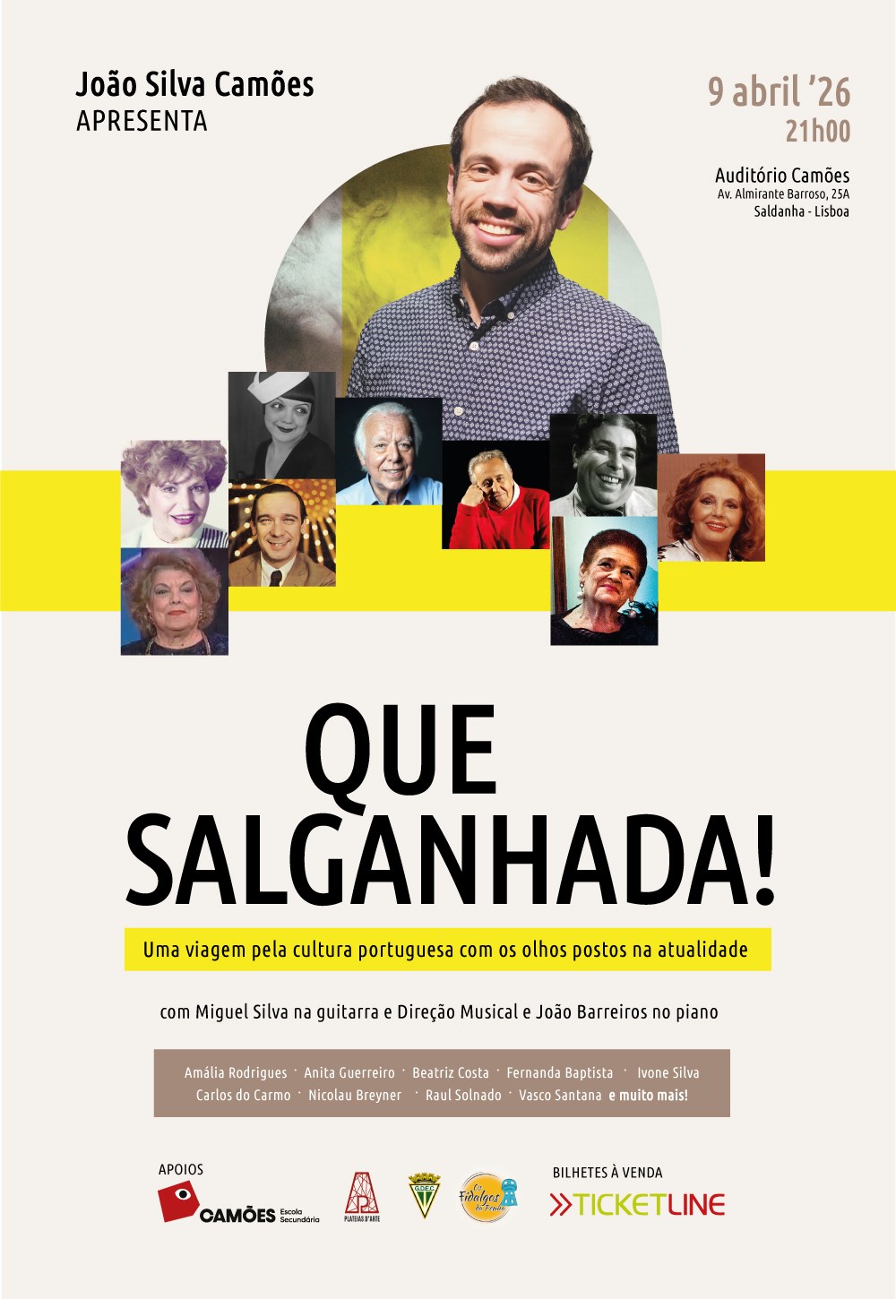 Concerto encenado à moda antiga no Auditório do Liceu Camões, em Lisboa, que revive as memórias musicais de Portugal — de Amália Rodrigues a Carlos do Carmo — através do fado, das marchas e de canções clássicas. Espetáculo de 90 minutos sem intervalo, indicado para famílias a partir dos 6 anos.