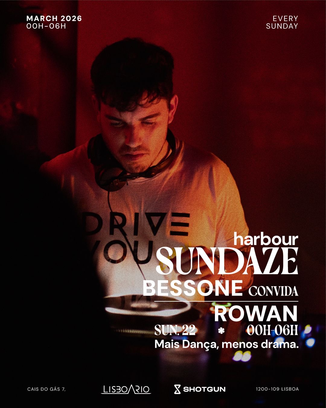 Harbour Sundaze regressa à zona ribeirinha de Lisboa, com Bessone a convidar Rowan para uma noite soalheira de Techno e House no Harbour Music Shelter, entrelaçando baixos pulsantes, grooves cintilantes e vibrações à beira-mar.
