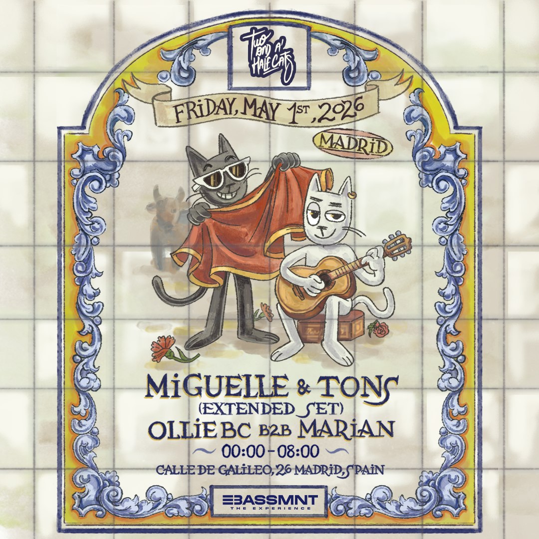 Two and a Half Cats presenta a Miguelle & Tons con un set extendido en The Bassement Club de Madrid. Una noche de música electrónica pulsante en una atmósfera de club envolvente, perfecta para bailar hasta altas horas.
