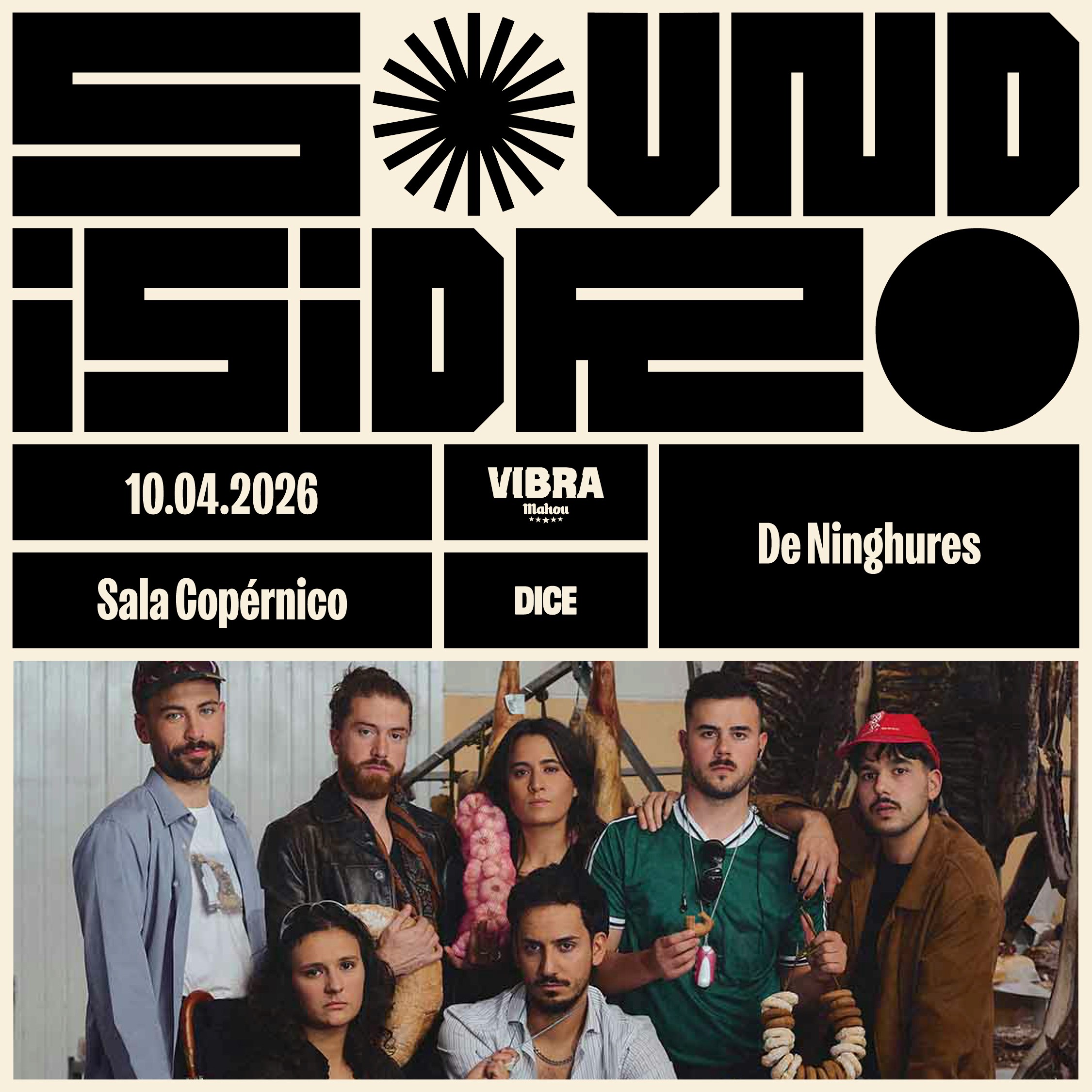 Concierto en directo de corte indie de De Ninghures en Sala Copérnico, Madrid, dentro de la serie Sound Isidro. Espectáculo de una noche el 10 de abril de 2026 (20:00), con una actuación enérgica y concentrada en un espacio íntimo; entradas a 16,95 €.