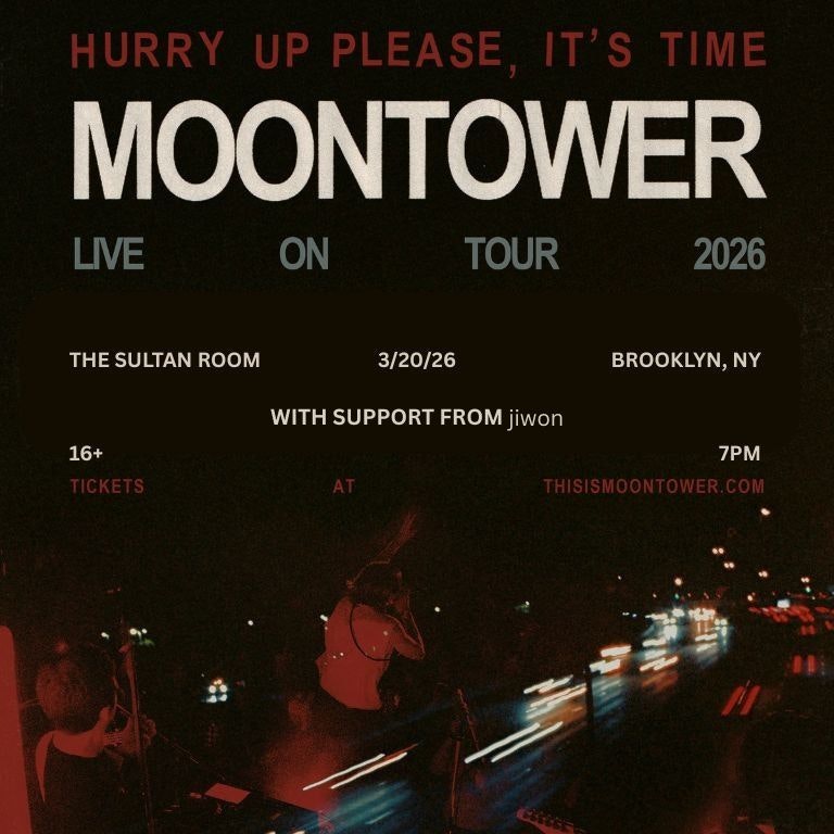 Late-night electronic set featuring Moontower and jiwon at The Sultan Room — a 16+ club-style show with dancing and DJ/live performance energy.