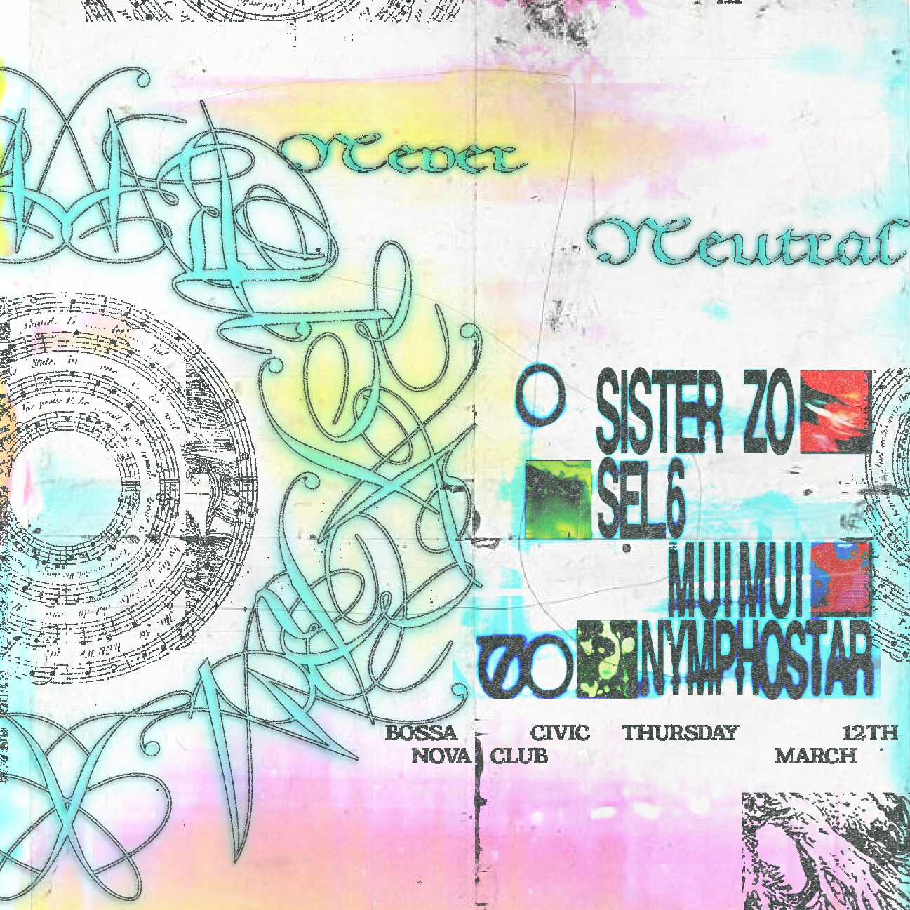 Never Neutral is an electronic bass/acid club night at Bossa Nova Civic Club in Brooklyn, NYC.