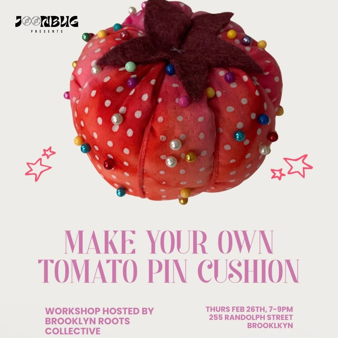 Learn to sew a tomato pin cushion using Brooklyn Creative Reuse fabrics in a diy workshop at Brooklyn Roots Collective; drinks and live music included.