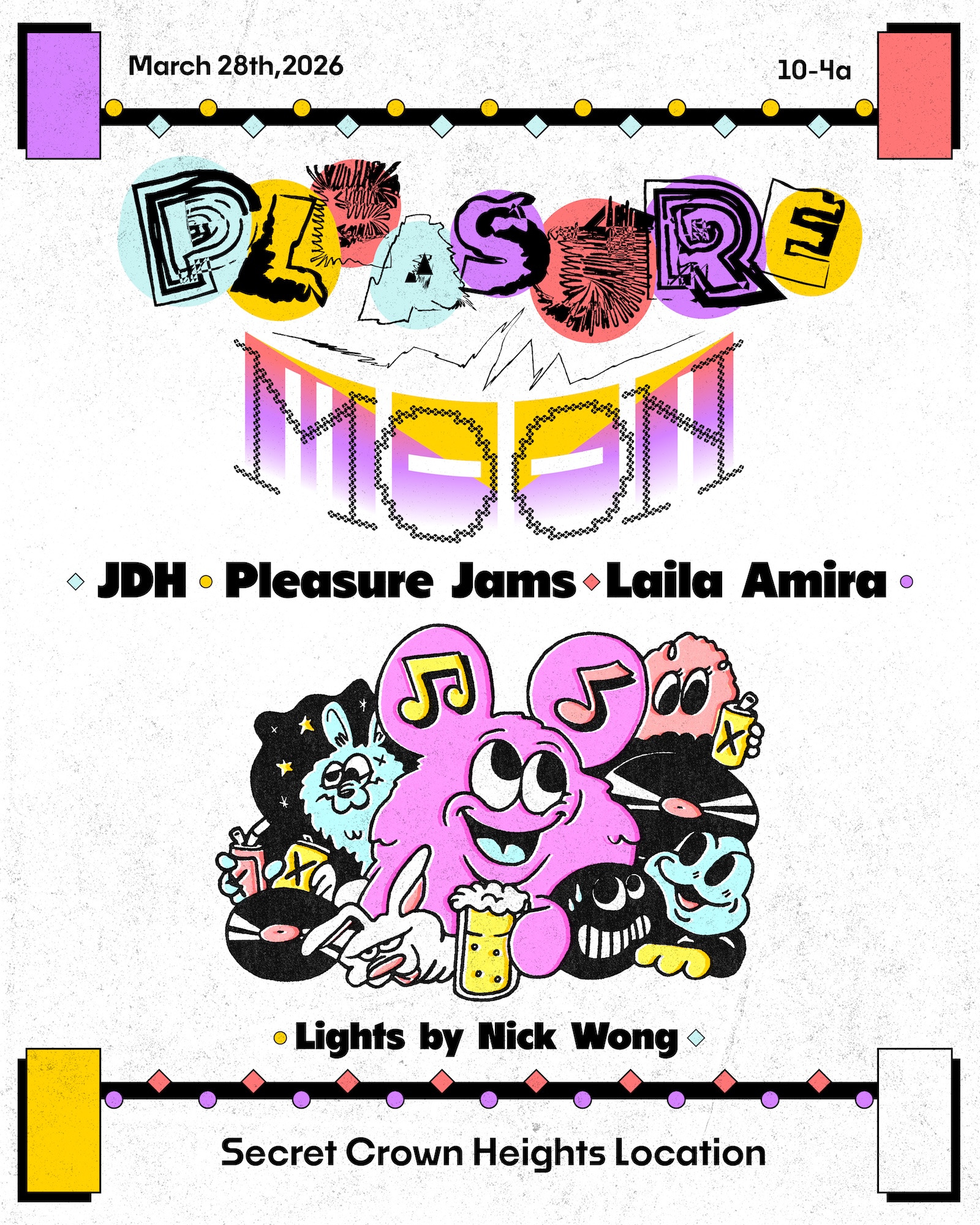 Pleasure Moon casts a spell of House and Acid at a to-be-announced venue, inviting moonlit synths, sunken basslines, and a revelry that glides between club glow and cosmic groove.