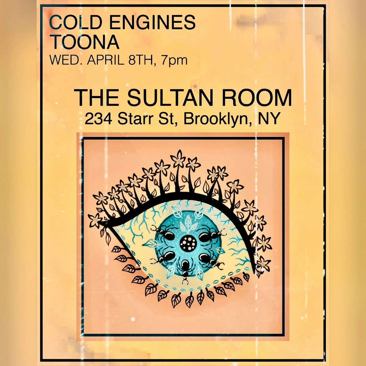 An electric NYC night at The Sultan Room featuring Cold Engines and Toona. A 21+ indoor show with club-ready electronic vibes, high-energy performances, and a late-evening dance-friendly atmosphere in a vibrant venue.