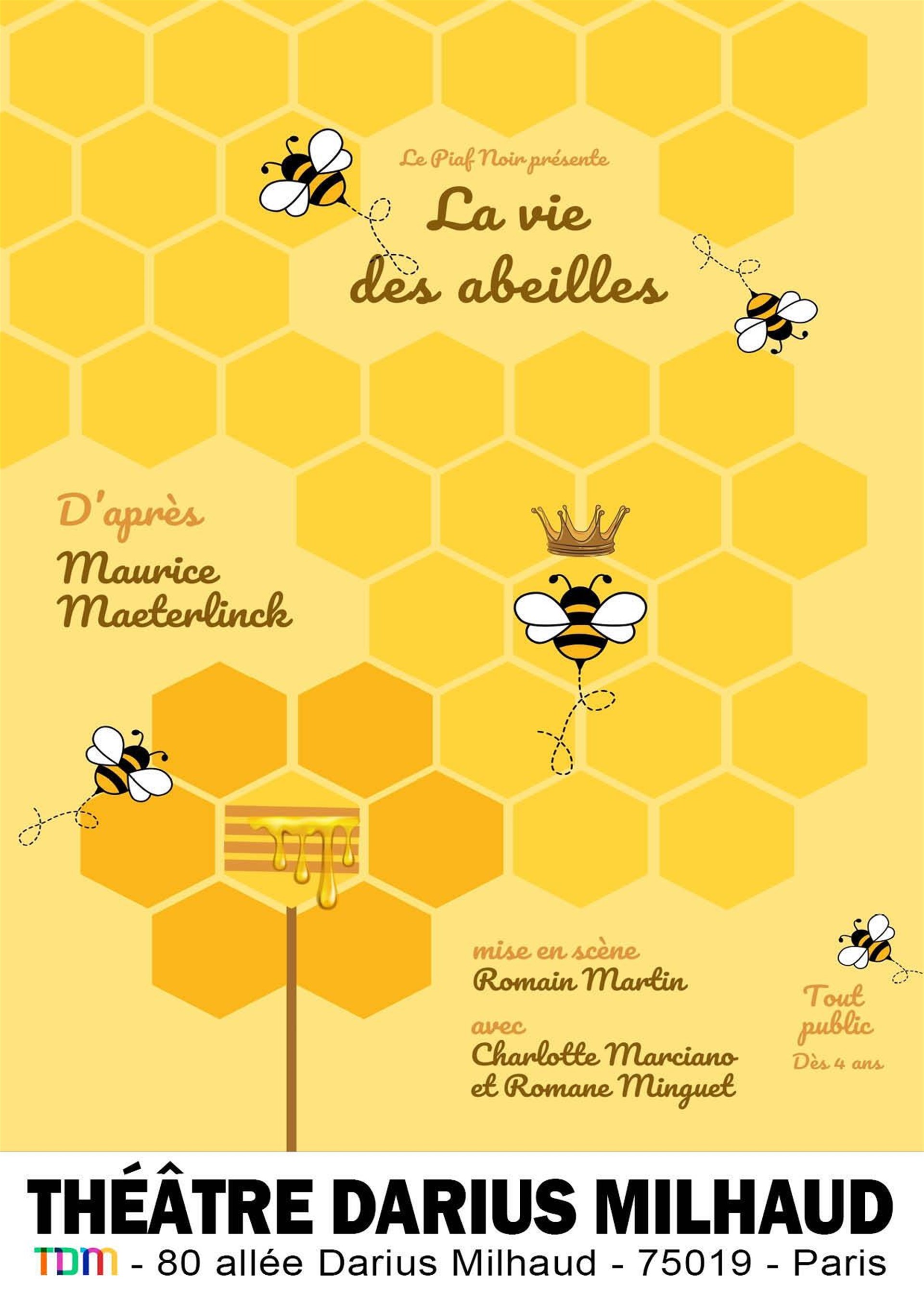 A poetic, playful bee tale staged at Théâtre Darius Milhaud, inviting kids and families to discover the world of the hive and the bees’ vital role in our environment. A lyrical story that blends imagination with environmental wonder in a charming theatre setting.