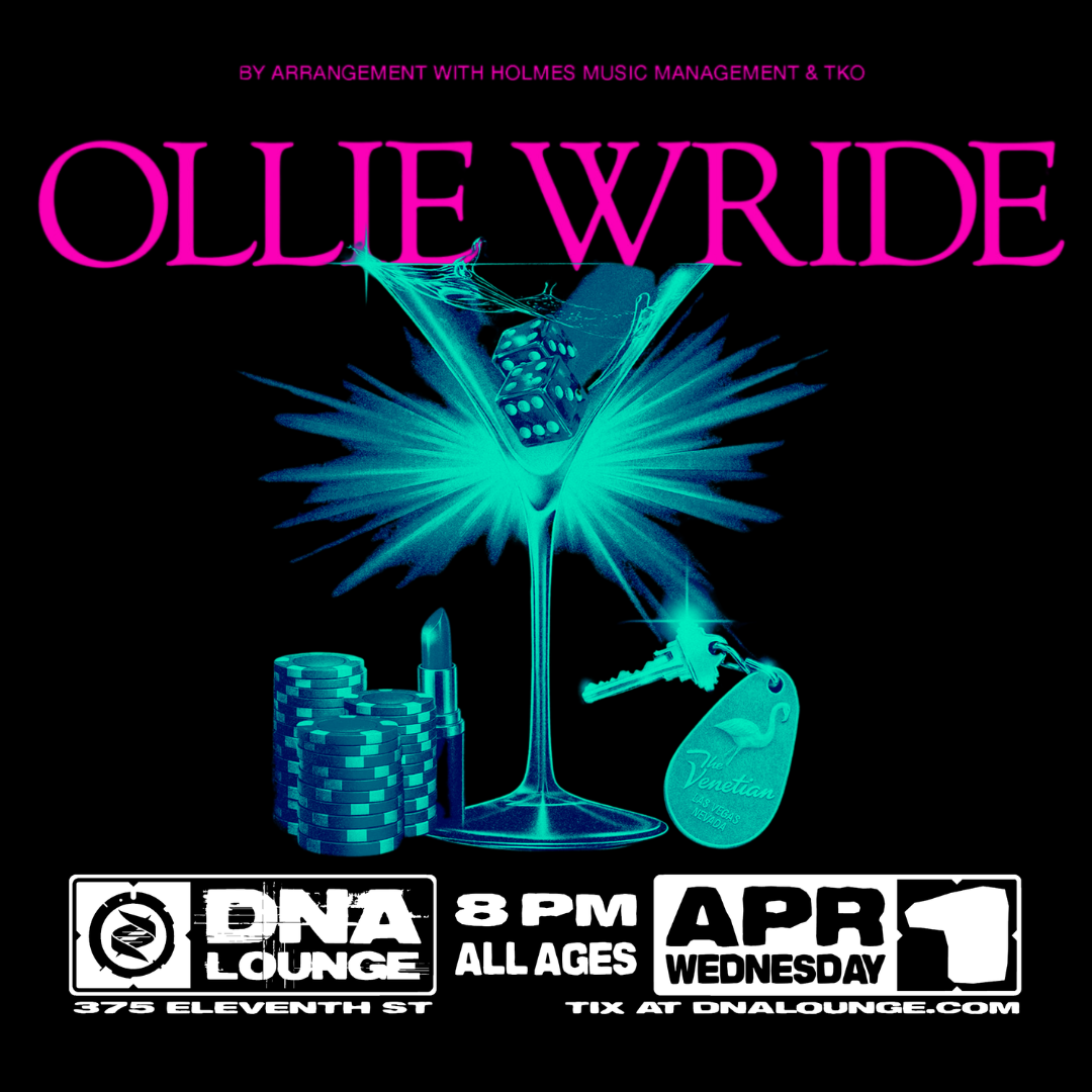 Ollie Wride performs a sleek pop-electronic set at DNA Lounge, fusing catchy vocals with glossy synths in an intimate club atmosphere. Expect a high-energy night of modern pop and electronic textures amid DNA's immersive visuals and SF nightlife vibe.