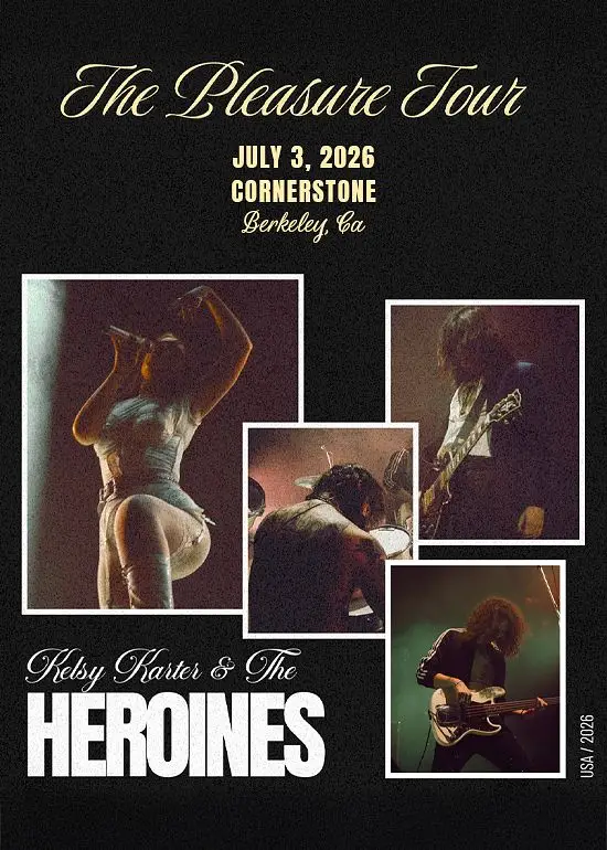 Kelsy Karter & The Heroines bring The Pleasure Tour to Cornerstone Berkeley on July 3, 2026 — a high-energy glam-punk/rock night for fans of bold live performances.