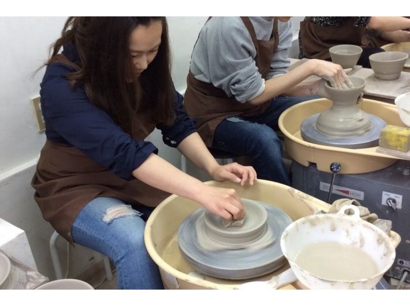 電動ろくろを使った初心者向けの実技陶芸ワークショップで、講師が基本の成形を丁寧に指導します。作りたての器を持ち帰れる、TokyoのShimbashiエリアで開かれる実践的で創造的な入門講座です。