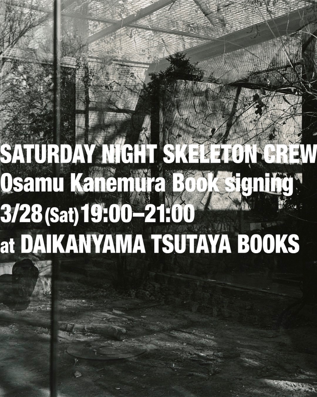 Osamu Kanemuraが著書Saturday Night Skeleton Crewのサイン会をDaikanyama Tsutaya Booksで行います。有料(11,000円)のこのイベントは、スタイリッシュな東京の書店で著者に会い、サイン入り本を手にして現代日本文学に触れる機会を提供します。