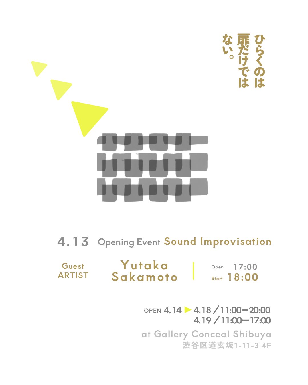 MuninaruとYasuki MukougawaによるThe Moment It Opensは、Gallery Conceal Shibuyaでの音と彫刻のインスタレーションです。没入型の音響と触覚的な造形を通して来場者に境界の瞬間を呼吸するように体験させる現代アートの展示で、2026年4月19日まで公開されています。