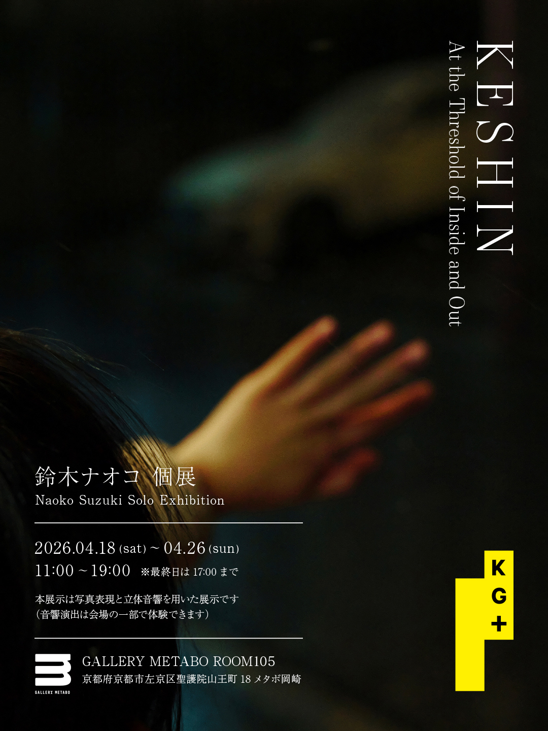 Naoko SuzukiのKeshin: At the Threshold of Inside and Outが東京のGallery Metaboで開催される、静止画像とメディアアート技法を融合した没入型の写真・インスタレーション展で、内と外の境界を探り、鑑賞者を内省的で感覚的な空間へ誘う。会期は2026年4月26日まで。