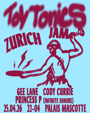 Toy Tonics Jam #2 bringt Gee Lane, Cody Currie und Princess P ins Palais Mascotte für eine Peak‑Hour‑House‑Session. Groove‑dichte Sets in neonbeleuchteter Club‑Atmosphäre verbinden Deep House mit disco‑durchzogenen Rhythmen zu einer energiegeladenen Clubnacht.