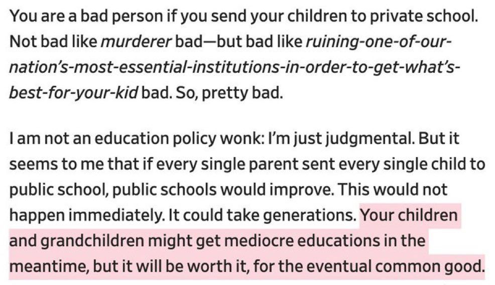 I *agree* with the idea that the only way for the public schools to get better is if some parents, choose to send send their kids to marginal schools