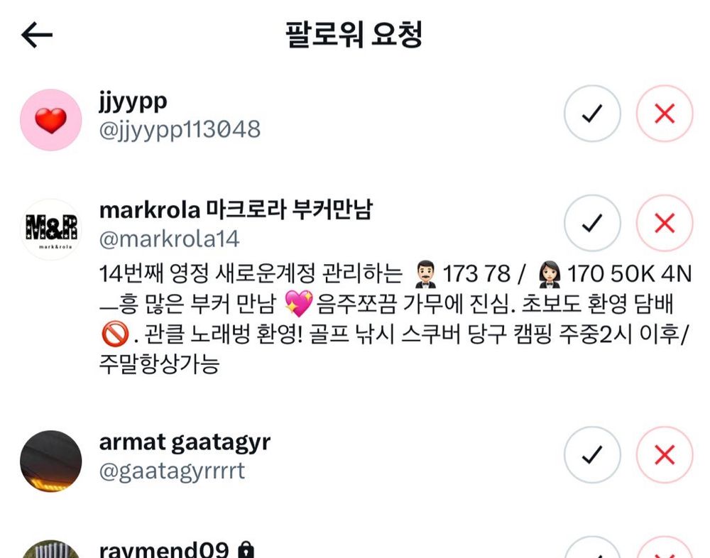 부커분들은 저희가 궁금해서 제 X에 팔로 요청주시는거죠?