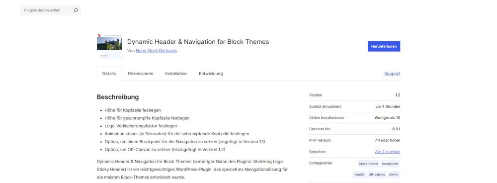 "Dynamic Header & Navigation for Block Themes" (vorheriger Name: „Shrinking Logo Sticky Header“) ist ein leichtgewichtiges WordPress-Plugin, das speziell für Block-Themes entwickelt wurde. Es fügt ein...