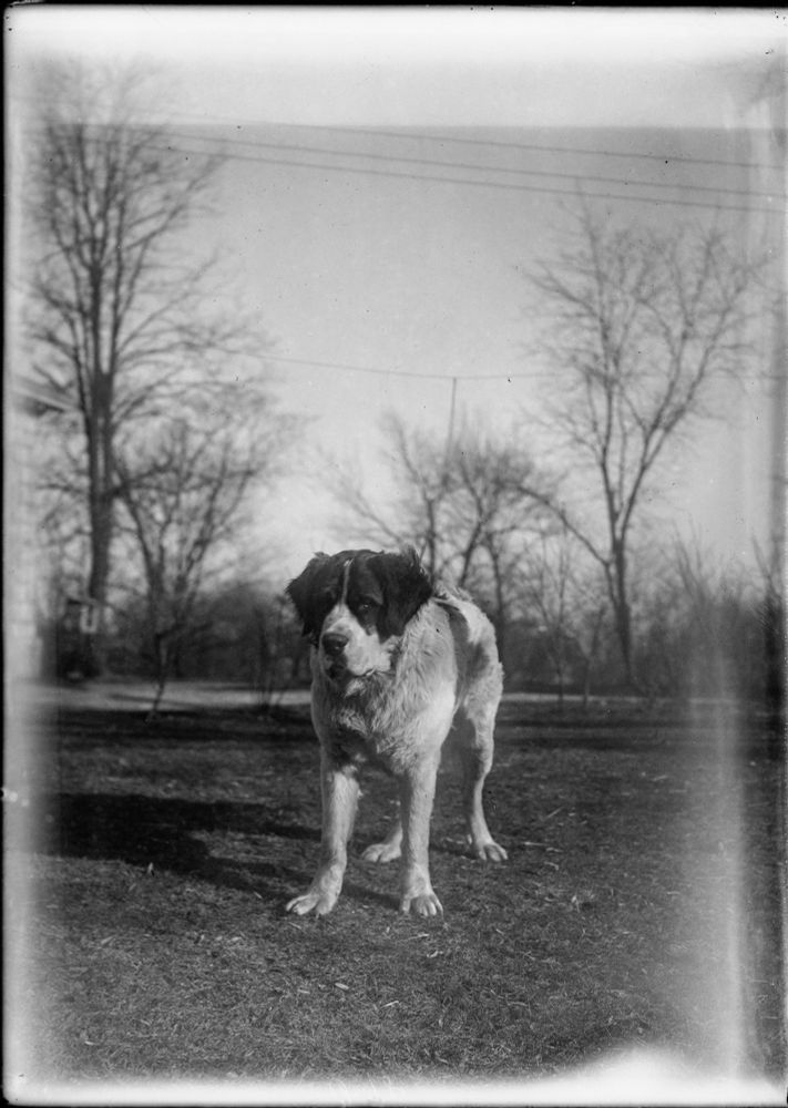 Oakwood, Ohio, circa 1920.  Orville Wright, beyond all that aeroplane stuff, was something of an amateur photographer and dog lover. Here is his dog Scipio at his home, Hawthorn Hill. The Wright Brothers started building a home for themselves in 1912. Wilbur died of typhoid the same year...
