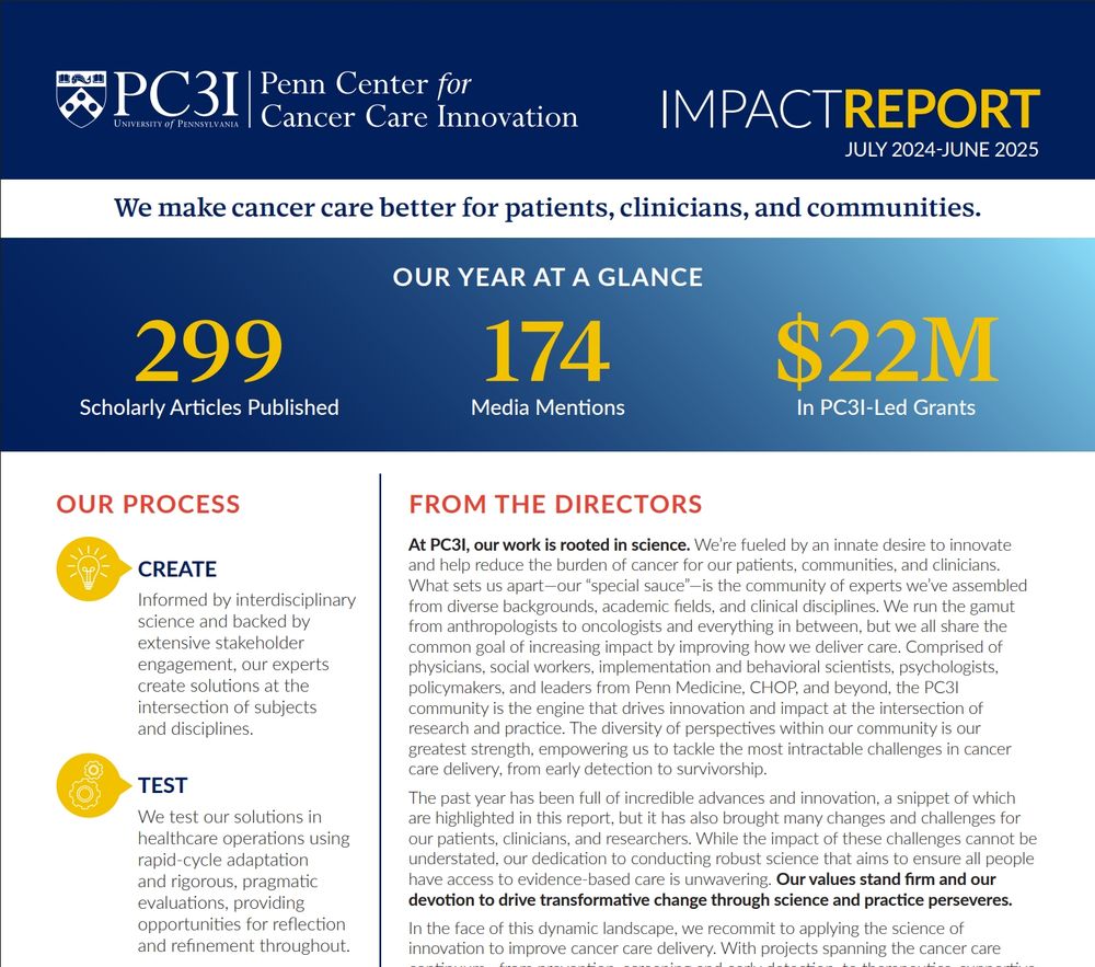 The Penn Center for Cancer Care Innovation (PC3I) works at the nexus of research and practice to create, test, and scale solutions to transform #cancercare.