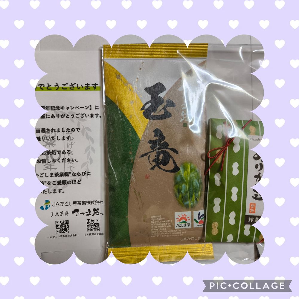 JAかごしま茶業株式会社さまの50周年記念キャンペーンに当選し、お茶と抹茶豆頂きました😊