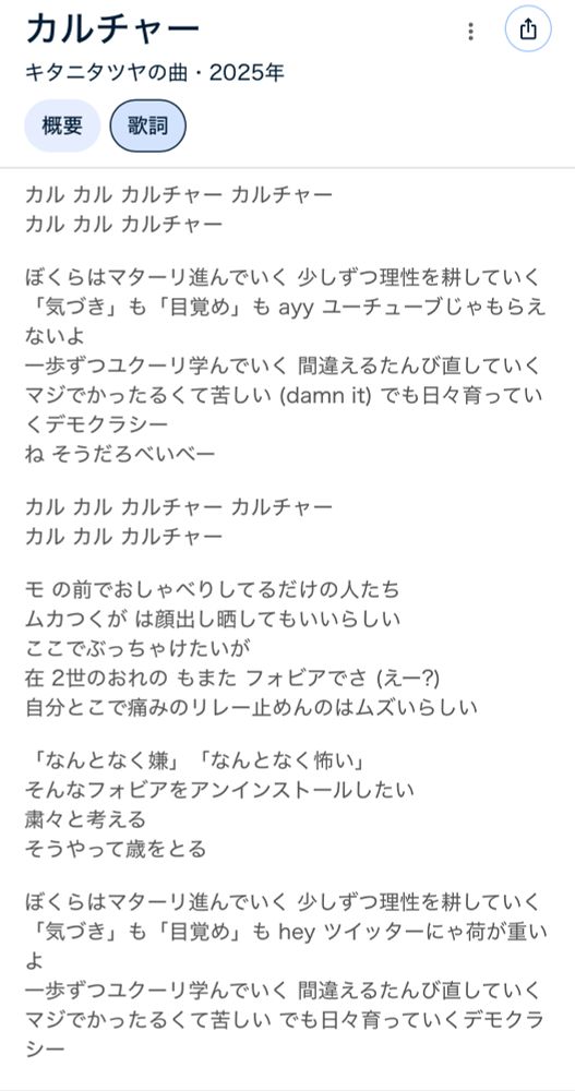 キタニタツヤのカルチャー聞いてクレメンス