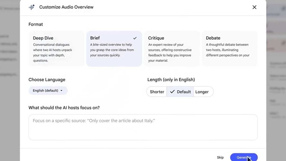 Nouvelle fonctionnalité pour les résumés audios de #NotebookLM, disponible en français d'ici quelques jours..