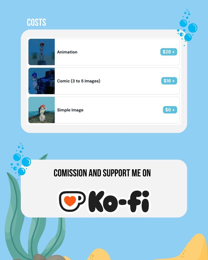 I'm opening commissions on KOFI! here are the listings and prices. Im focusing on blender renders. and since im trying out, there are limited spaces!
