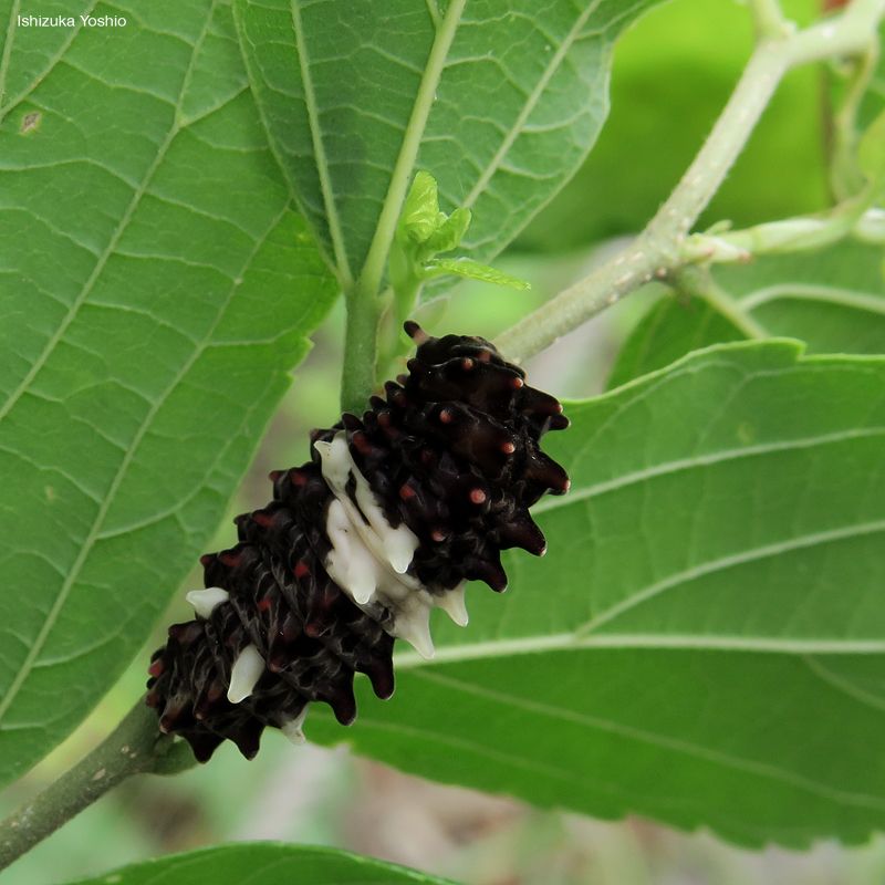 二枚目が個性的な姿のジャコウアゲハの幼虫。ウィキペディアによると名の由来は【雄の成虫が麝香(じゃこう)のような匂いを発することに由来しており、その成分はフェニルアセトアルデヒドである】とあるが、自分は匂いは嗅いだことはない。