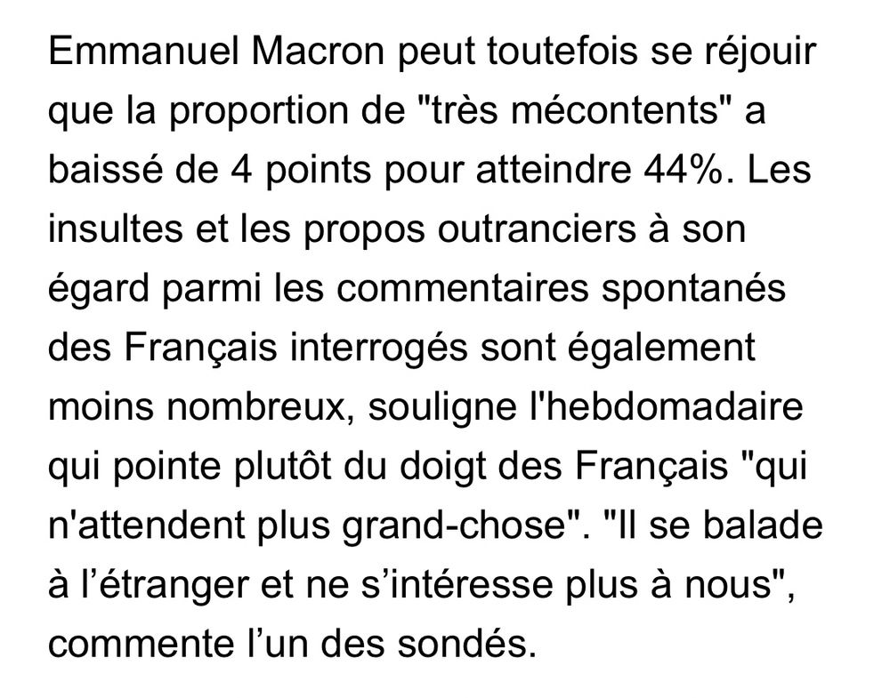 « Bonne nouvelle Mr le président, les gens n’ont même plus la motivation de vous dire d’aller vous faire foutre. »