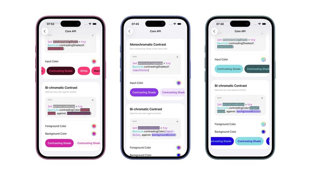 Excited to reintroduce Garnish, a Swift Package for intelligent contrast in your UI. Great for accessibility and visual harmony.