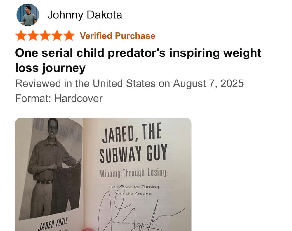 The AI synopsis for the customer reviews of Jared Fogle’s book are problematic.