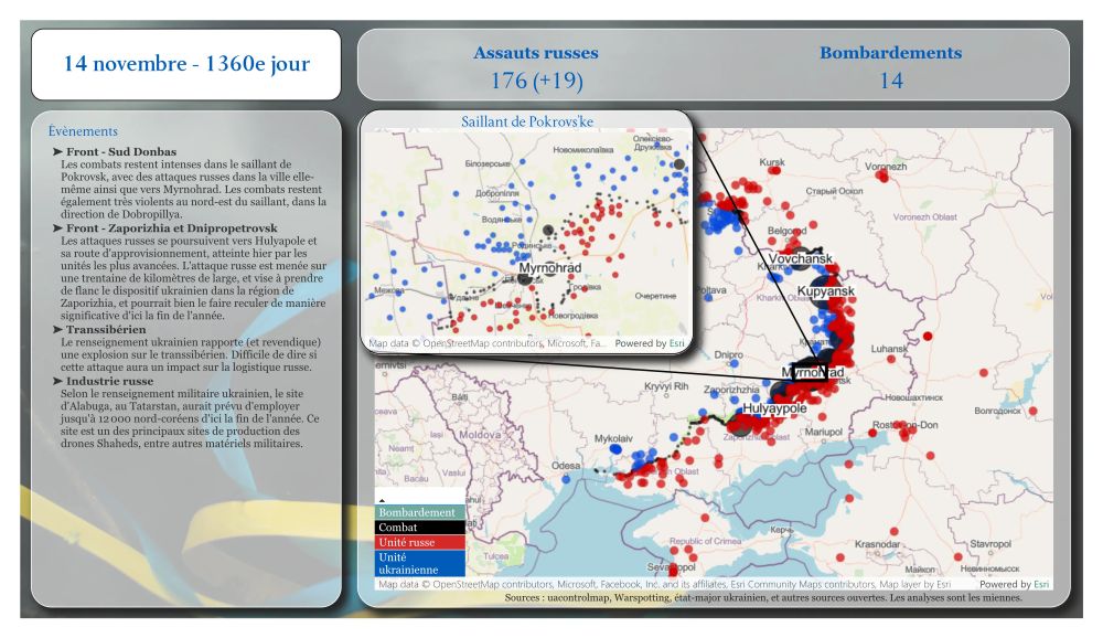 > Front : moins d'attaque russes, mais toujours des avancées dans la région de Dnipropetrovsk. Le saillant de Pokrovsk tient.