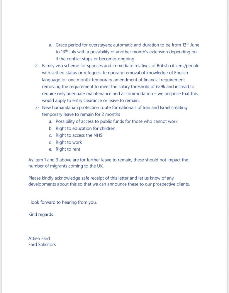 With #IranUnderAttack #IsraeliranWar , some nationals of both countries are stranded in the UK, and visas may have expired or due to expire; spouses being apart, I have written to the Home Secretary as the gov has not made any policy announcements about immigration control! Govmnt should act now.