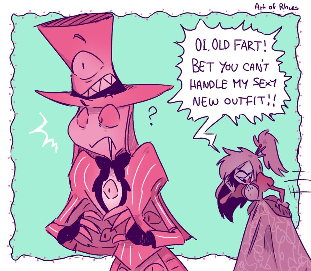 #HazbinhotelFanart #HazbinHotelAngelDust #HazbinHotelSirPentious #HazbinHotelCherriBomb #oldart #artofrhues