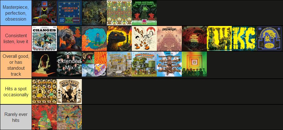 updated the king gizzard album tier list, holy shit it's changed a lot since the document was originally made