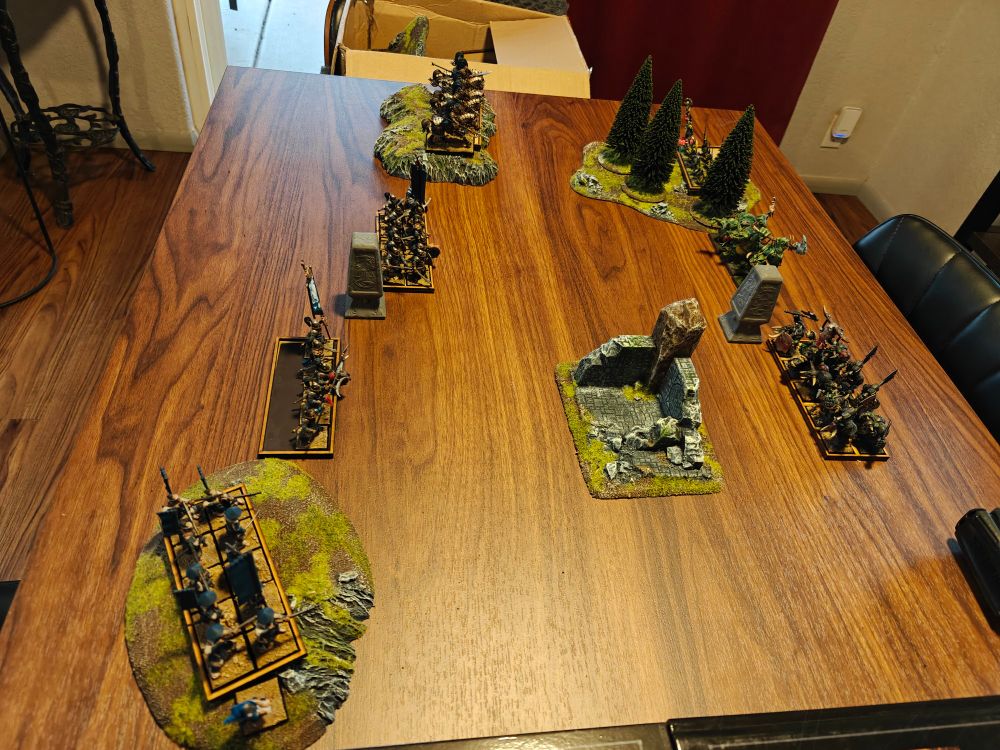 #Hobbystreak day 254. First games on my new gaming table. I hadn't planned to host yet but our local game shop was full with 2 events happening so the army of Grand Cathay did battle with the Orc hordes at home.