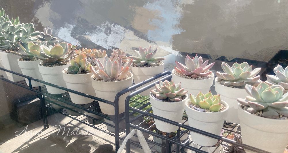 暗くて見づらいけどエケベリアもセダムもパキフィツムっぽい子もルビーネックレスも入っててかわいい🥹