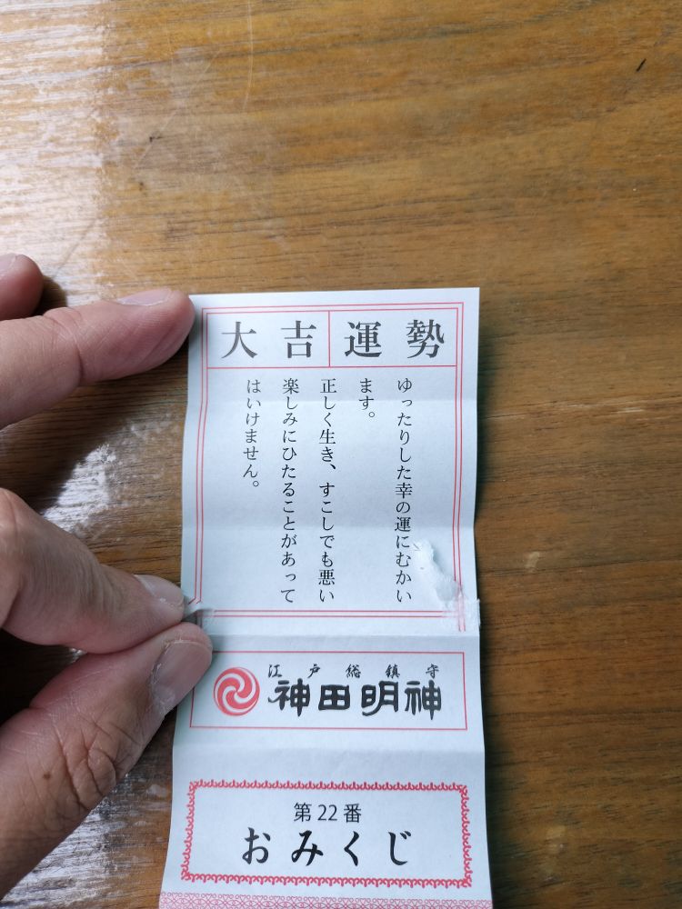 神馬のあかりちゃんにご挨拶もして、おみくじ引くと珍しく大吉がw