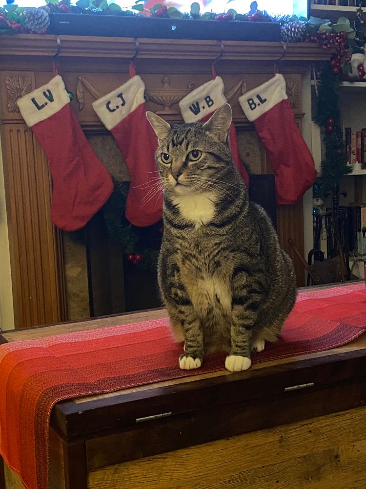 (Yes, indeed, they have their own stockings… W.B. and C.J. 😸)