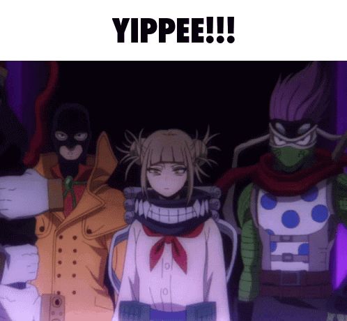 a group of anime characters are standing next to each other with the caption yippee
