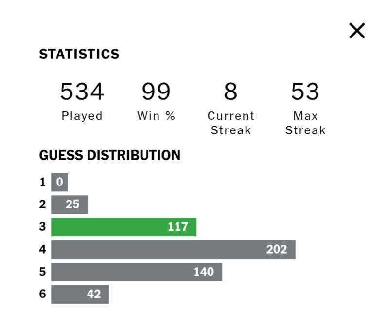 My script thinks that STAIR is better than CRATE, which apparently is one of the words that the NY Times WordleBot really likes as first guess.