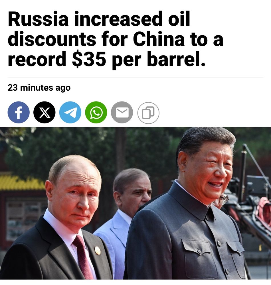 ‼️ Russia: “Russia increased oil discounts for China to a record $35 per barrel.”